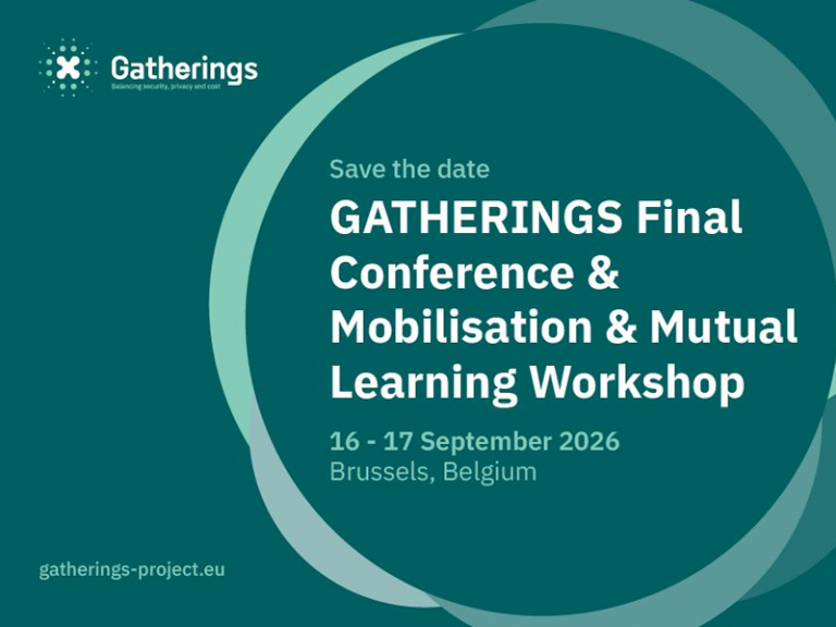The final events of the GATHERINGS project will bring together practitioners, policymakers, researchers and civil society representatives to discuss surveillance practices in public gatherings and their implications for public security, privacy and societal impact. The conference will present the project’s main results and launch the EU Handbook on Surveillance of Public Gatherings, followed by a hands-on workshop testing awareness-raising campaigns designed to support safer public events while minimising impacts on privacy and social outcomes.